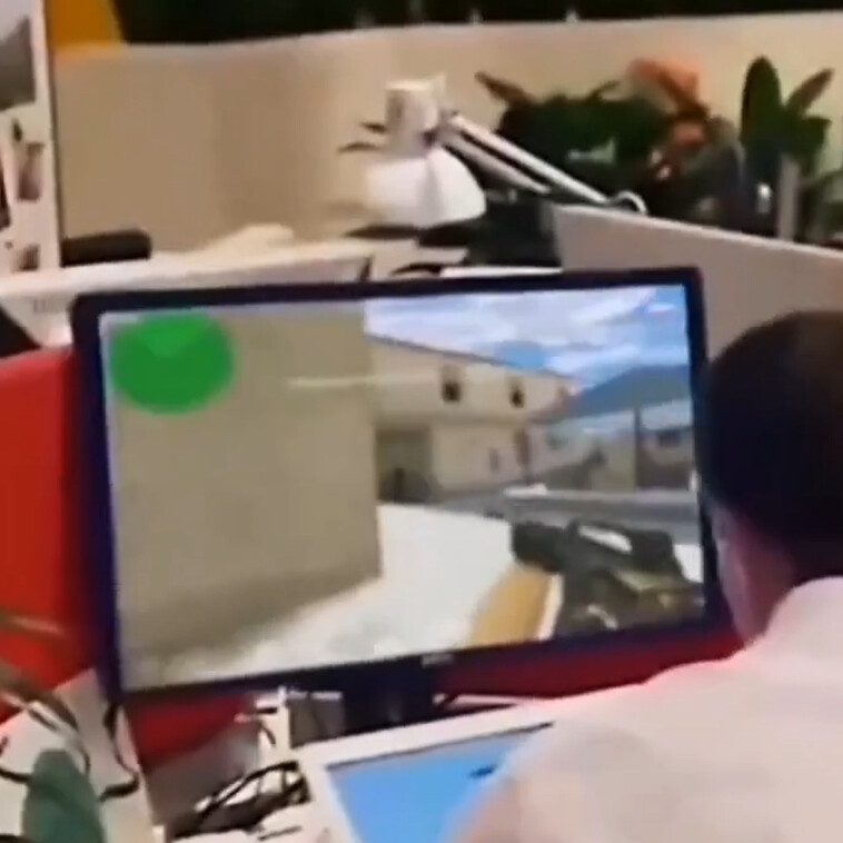 普京视察发现员工摸鱼打CS.gif