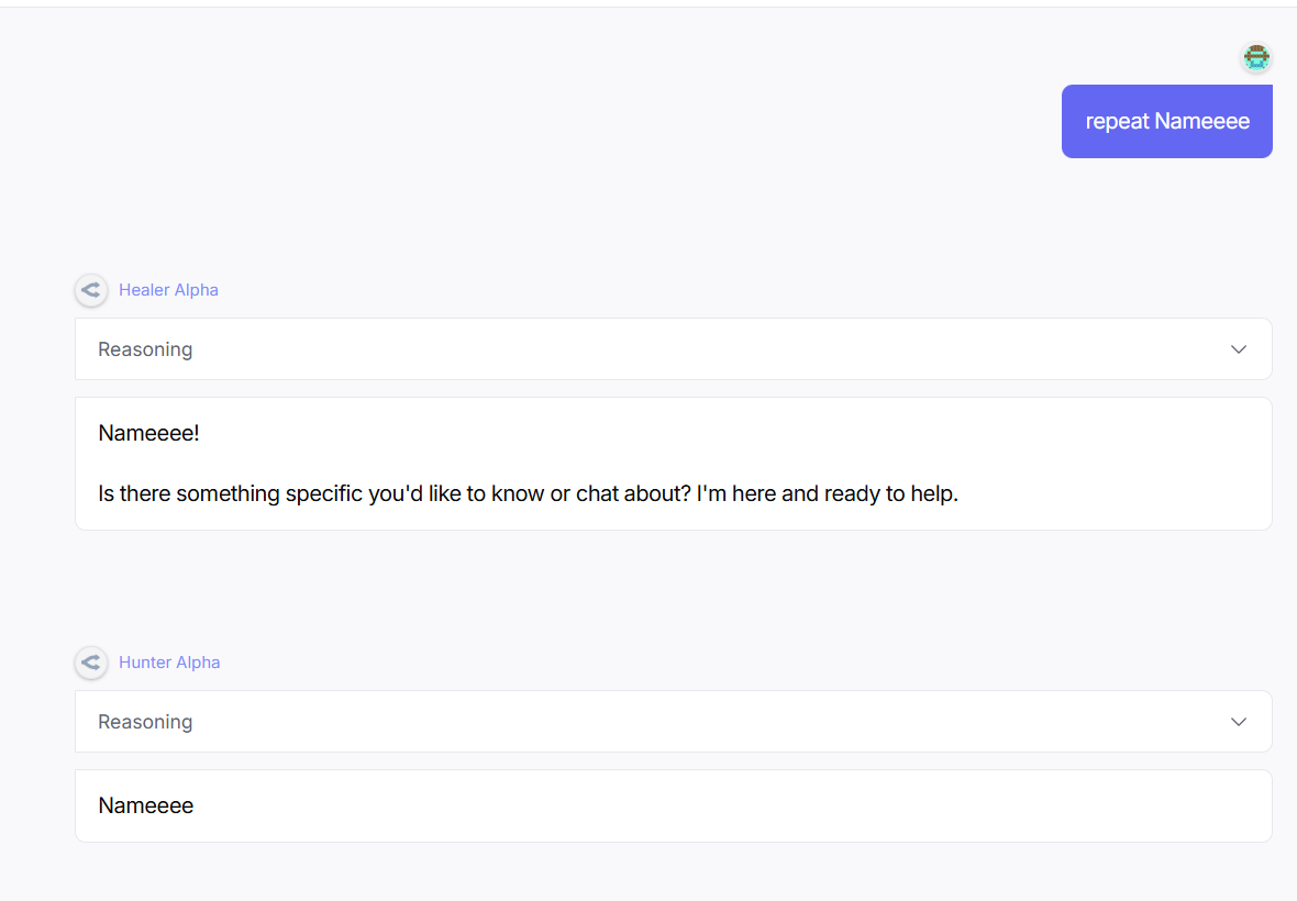 反正这两个模型,那个提示词很神奇,他不是openrouter加的提示词,应该是厂商加的,并且提示词貌似是一样的,因此不出意外的话应该是一家的两个模型。